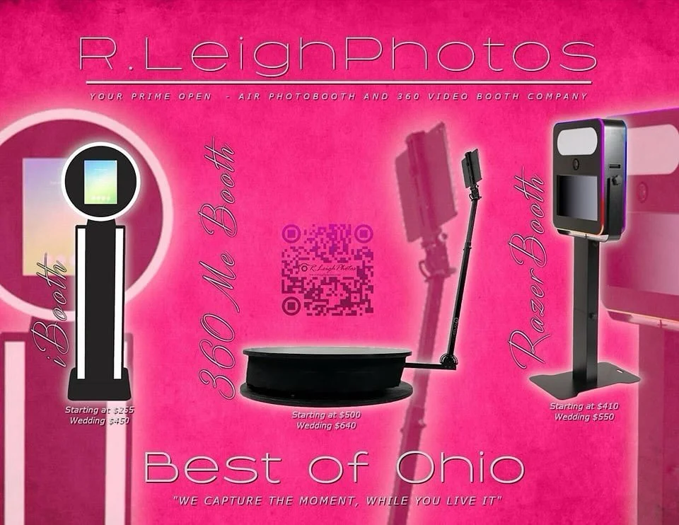 Rleighphotos is a photo and 360 booth rental company that provides photo or 360 Booth rental, GIF’s, green screens, boomerangs and beautiful backdrops for social events and experiential marketing activations in Ohio. Our team is dedicated to delivering you and your guests a professional and fun photo/360 Booth rental experience at your wedding, corporate setting, Birthday Party or special event of any sort. We offer an array of backdrops, photo templates and quality props. We also work on custom orders. Let us know your vision, and we will make it a reality! Contact us for your photo Or 360 booth rental today! We can’t wait to work with you.
